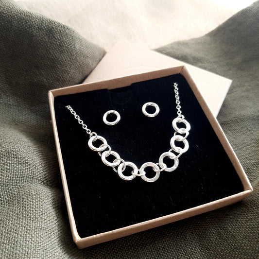 If you’re on the hunt for the perfect gift, look no further. Our necklace and earring sets are a thoughtful and stylish choice that will be cherished. Each set is handmade from recycled silver and comes beautifully packaged in a branded jewellery box. For those extra brownie points, be sure to select the gift wrap option at checkout - because the perfect present deserves the perfect presentation.