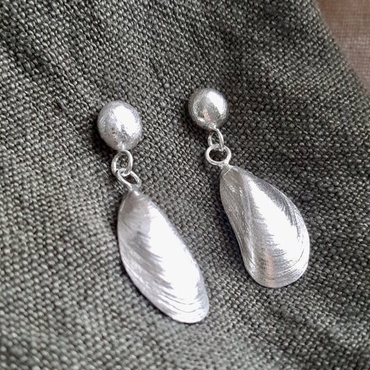 Silver Mussel Dangly Earrings