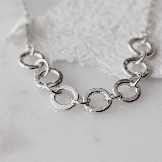 Bold, beautiful, and designed to stand out—this collection is all about making an impact. From chunky hoops that elevate any outfit to striking bracelets that add a touch of effortless glamour, these pieces are perfect for those who love jewellery that does the talking. Handmade from recycled silver, each design balances boldness with timeless style, so you can wear them season after season.