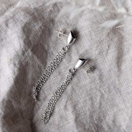 Silver Pod Chain Earrings