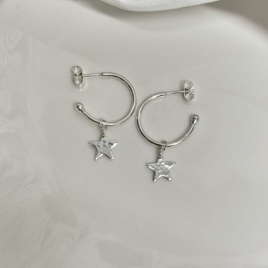 Silver Star Hoop Earrings