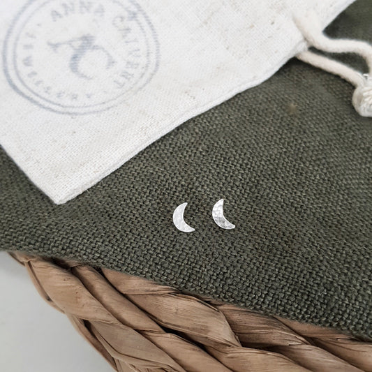 Tiny Silver Crescent Moon Earrings