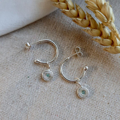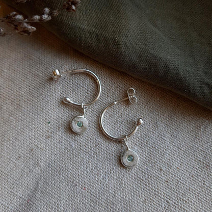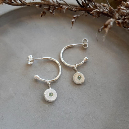 Each silver pebble is handmade by melting recycled silver into a ball and hammering it flat, so each one has a slightly unique shape. It's then set with a beautiful green 2mm Alexandrite stone.