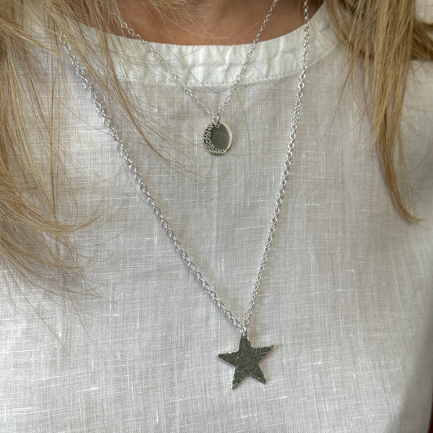 It's handmade from recycled sterling silver, and the hammered texture on the star catches the light beautifully and makes this piece of jewellery so unique.