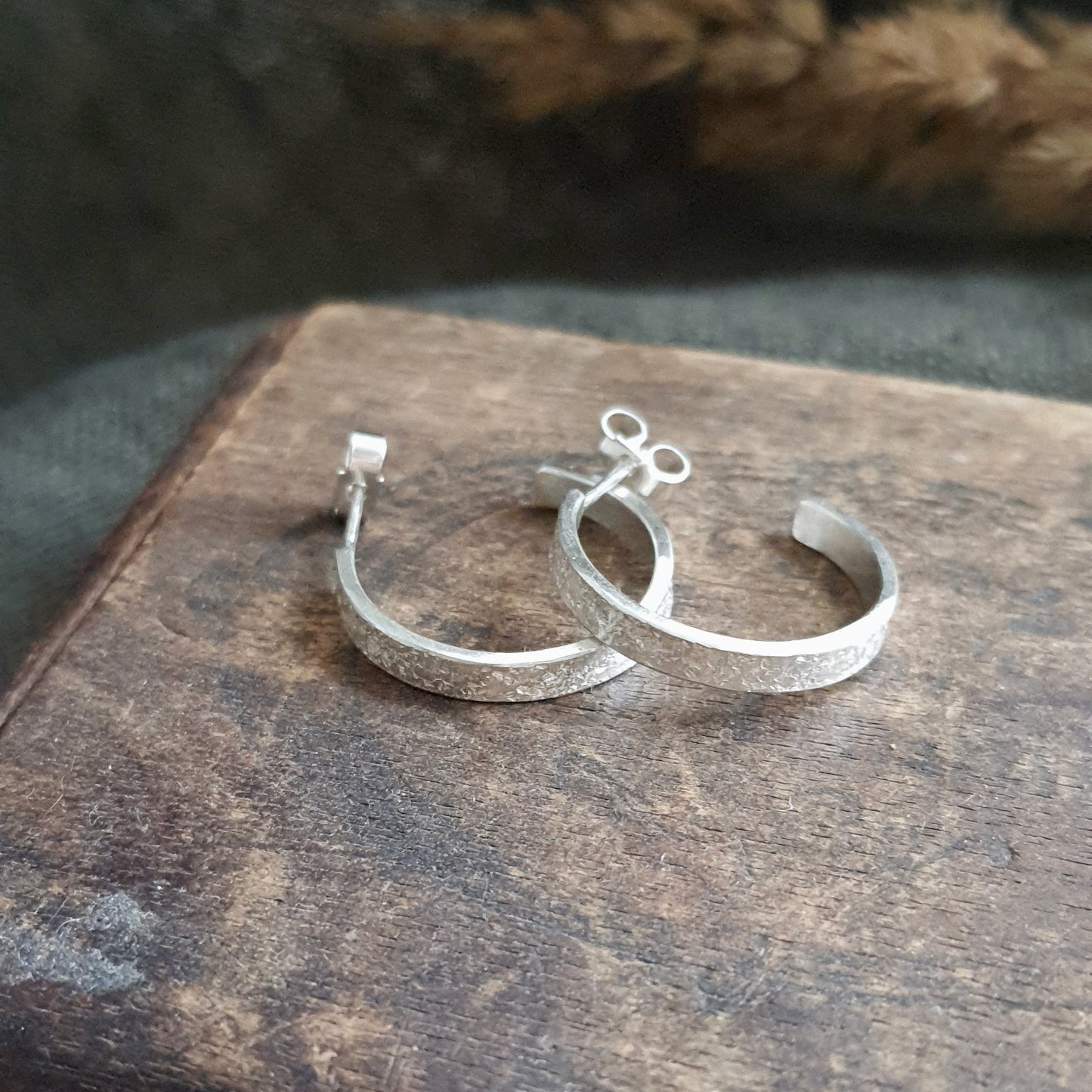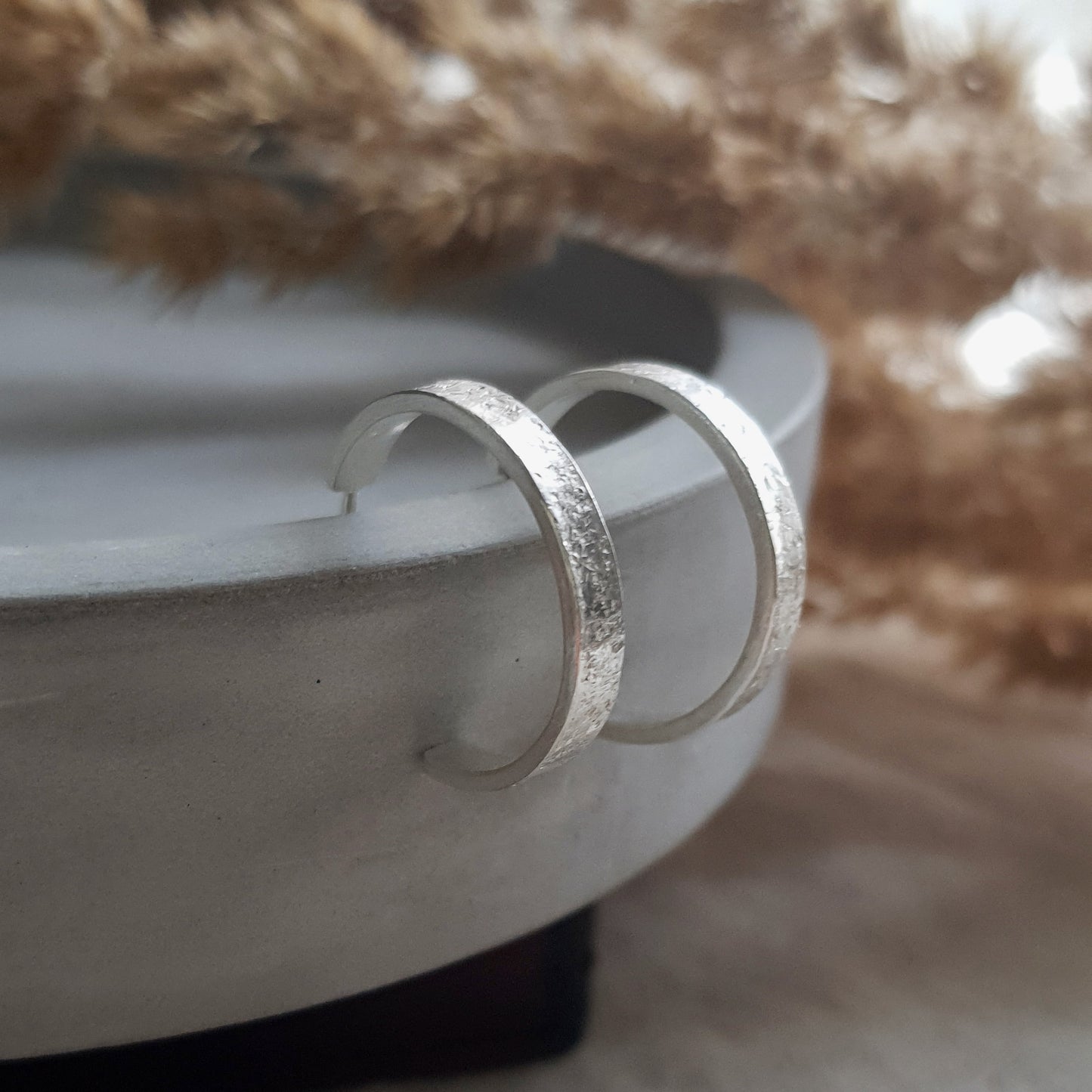 The hoops are entirely handmade, and the sand texture is added so no two pairs will be completely identical, meaning each pair is completely unique.
