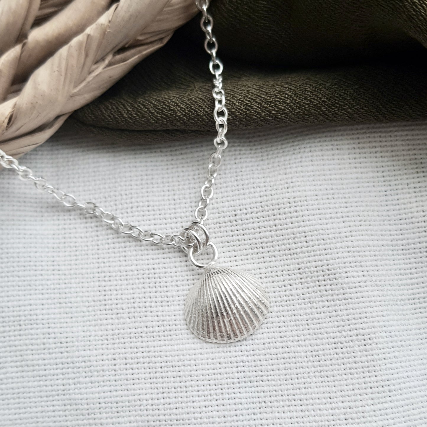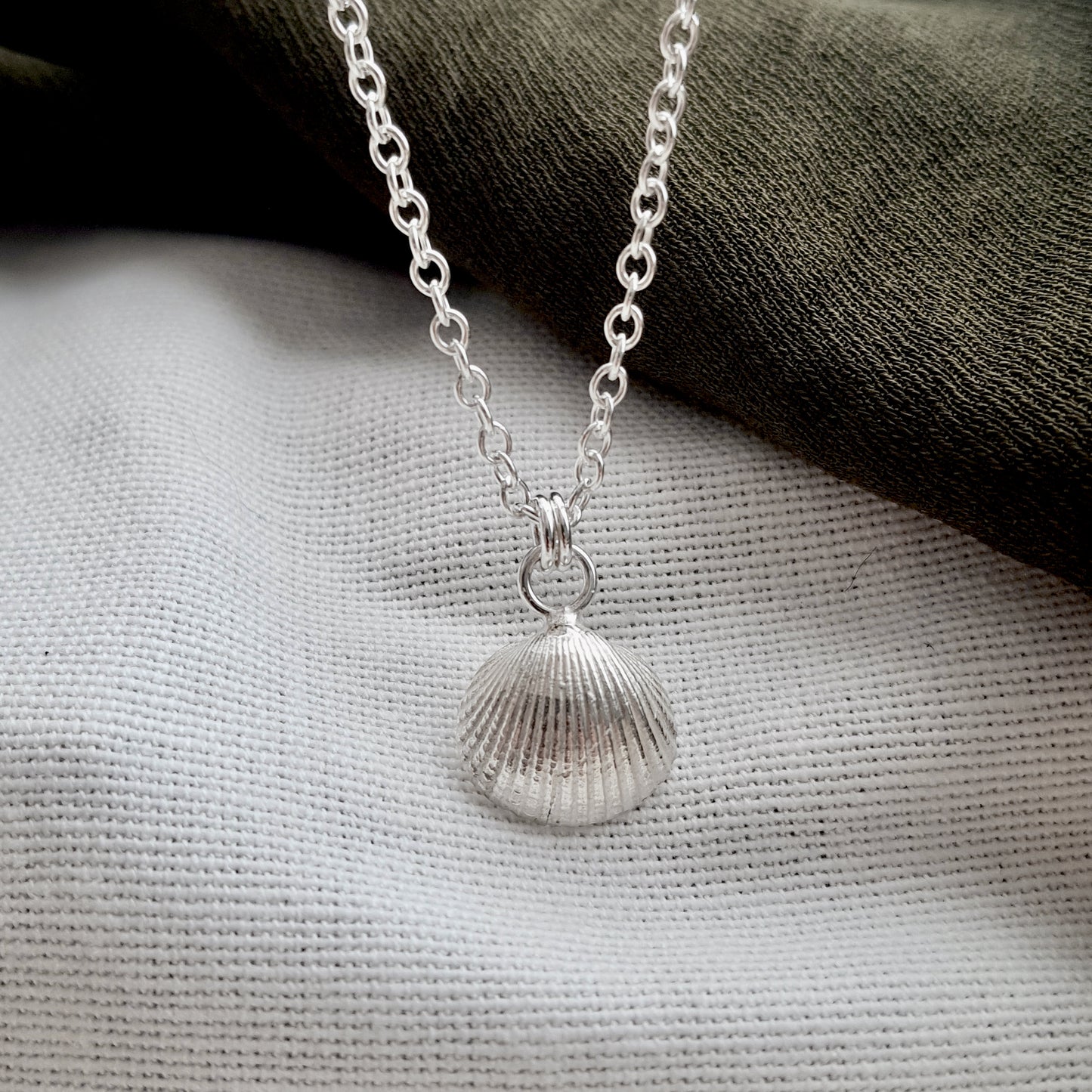 This beautiful cockle shell necklace is made from recycled silver and is a subtle reminder of your time at the coast.